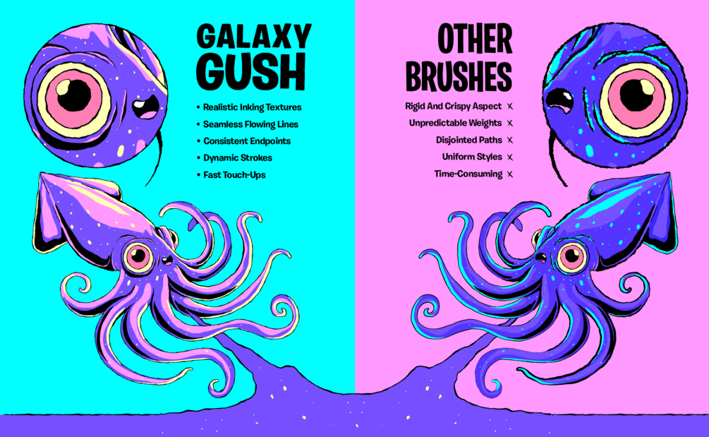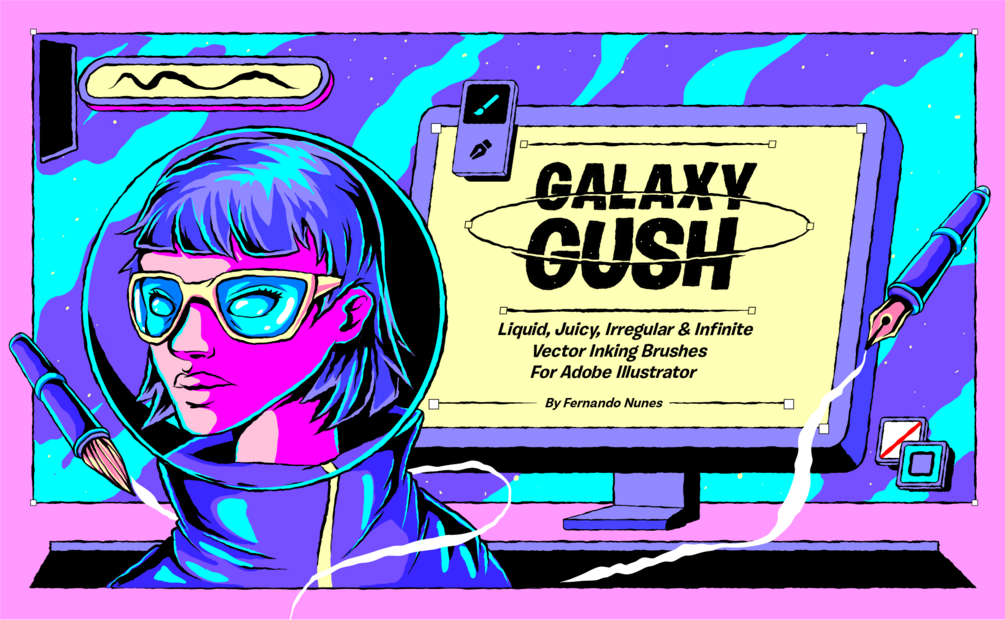 Enhance your Adobe Illustrator projects with my latest vector brush collection, expertly designed to draw irregular and liquid lines automatically with seamless precision with continuous fluid path, The Galaxy Gush Collection. This pack includes my The Intergalactic Liquid + Grain brushes.